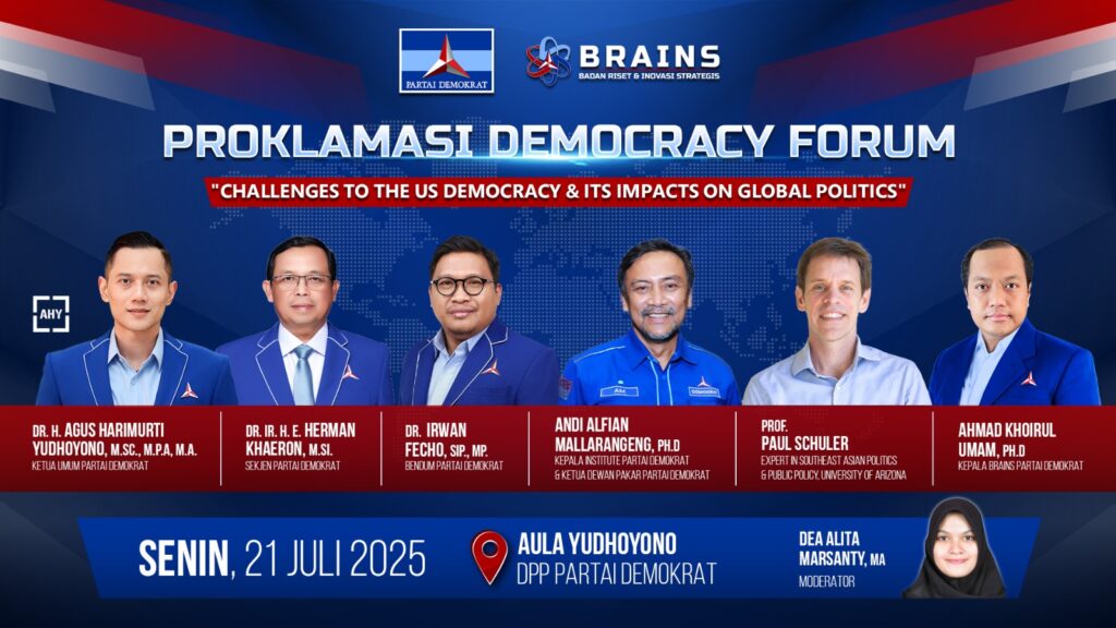Membawa tema “Challenges to the US Democracy & Its Impacts on Global Politics,” forum ini menghadirkan pemikir-pemikir seperti Prof. Paul Schuler dari University of Arizona, serta para tokoh nasional yakni Dr. Andi Mallarangeng serta Dr. Ahmad Khoirul Umam.