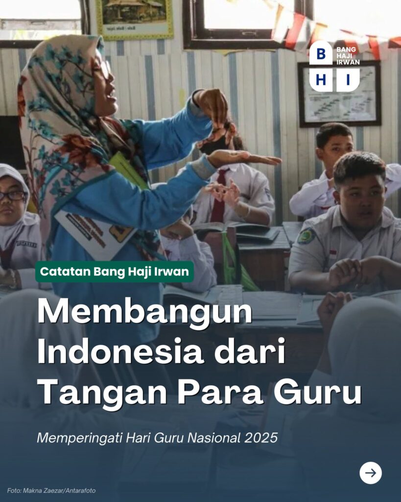 Di Hari Guru Nasional ini, saya ingin menyampaikan rasa hormat yang tulus untuk setiap guru yang bekerja dalam diam. Terima kasih telah mendidik, membesarkan mimpi, dan menjaga api harapan tetap menyala. Banyak dari mereka mungkin tidak pernah tersorot kamera, tetapi kontribusinya membentuk wajah Indonesia dari generasi ke generasi.