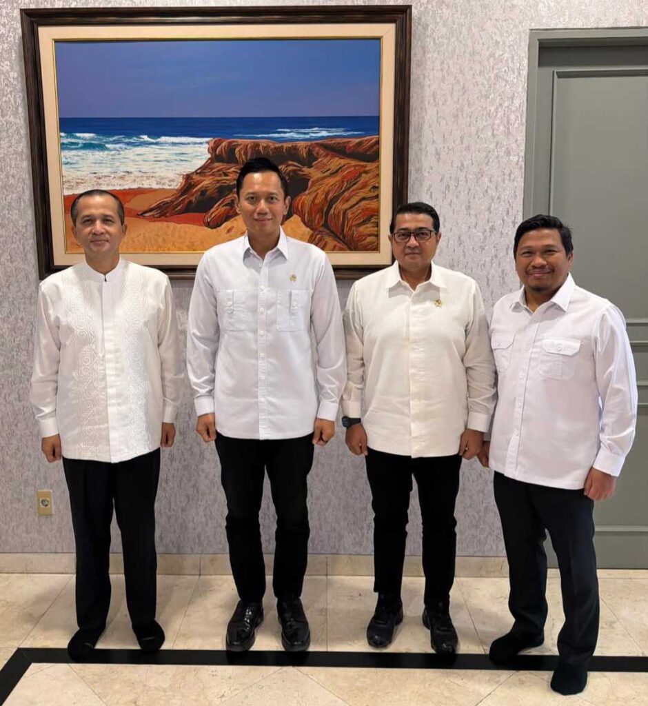 Dr. H. Irwan, SIP., MP (Bendara Umum DPP) Partai Demokrat berdiksusi bersama Menteri Koordinator Bidang Infrastruktur dan Pembangunan Kewilayahan (Bidang Infrastruktur) Mas Agus Harimurti Yudhoyono (AHY)