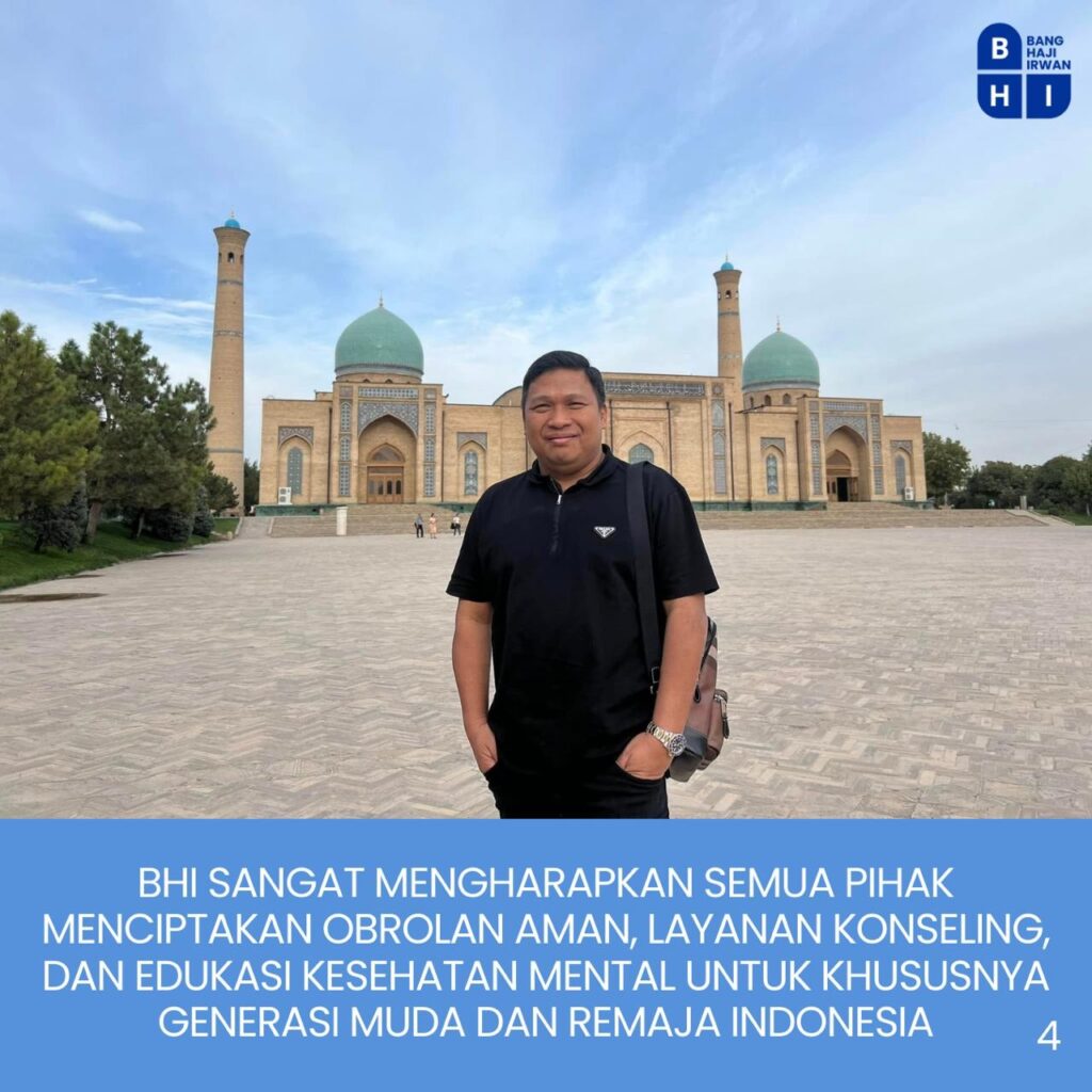 Dr.H. Irwan sangat mengharapkan semua pihak dalam menciptakan obrolan aman, layanan konseling dan edukasi kesehatan mental untuk khususnya generasi muda dan remaja Indonesia.